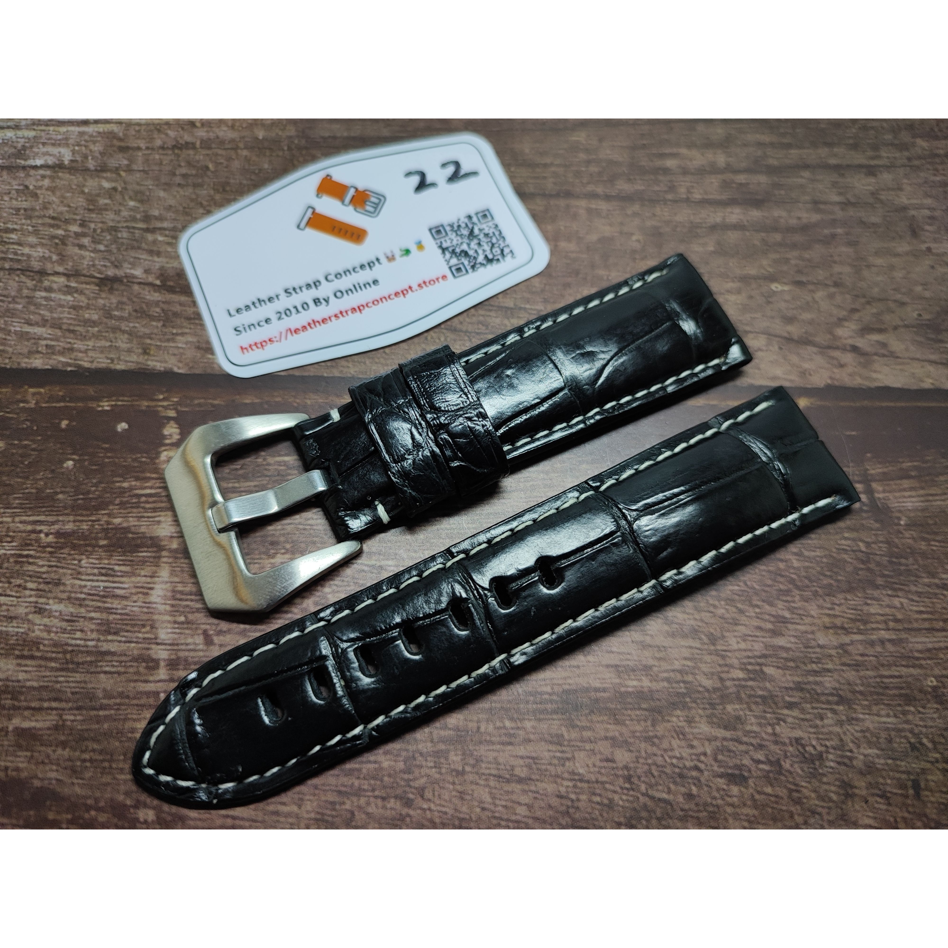 22mm Pan型 真鱷魚錶帶 雙面料 x 大竹節 黑色白色線