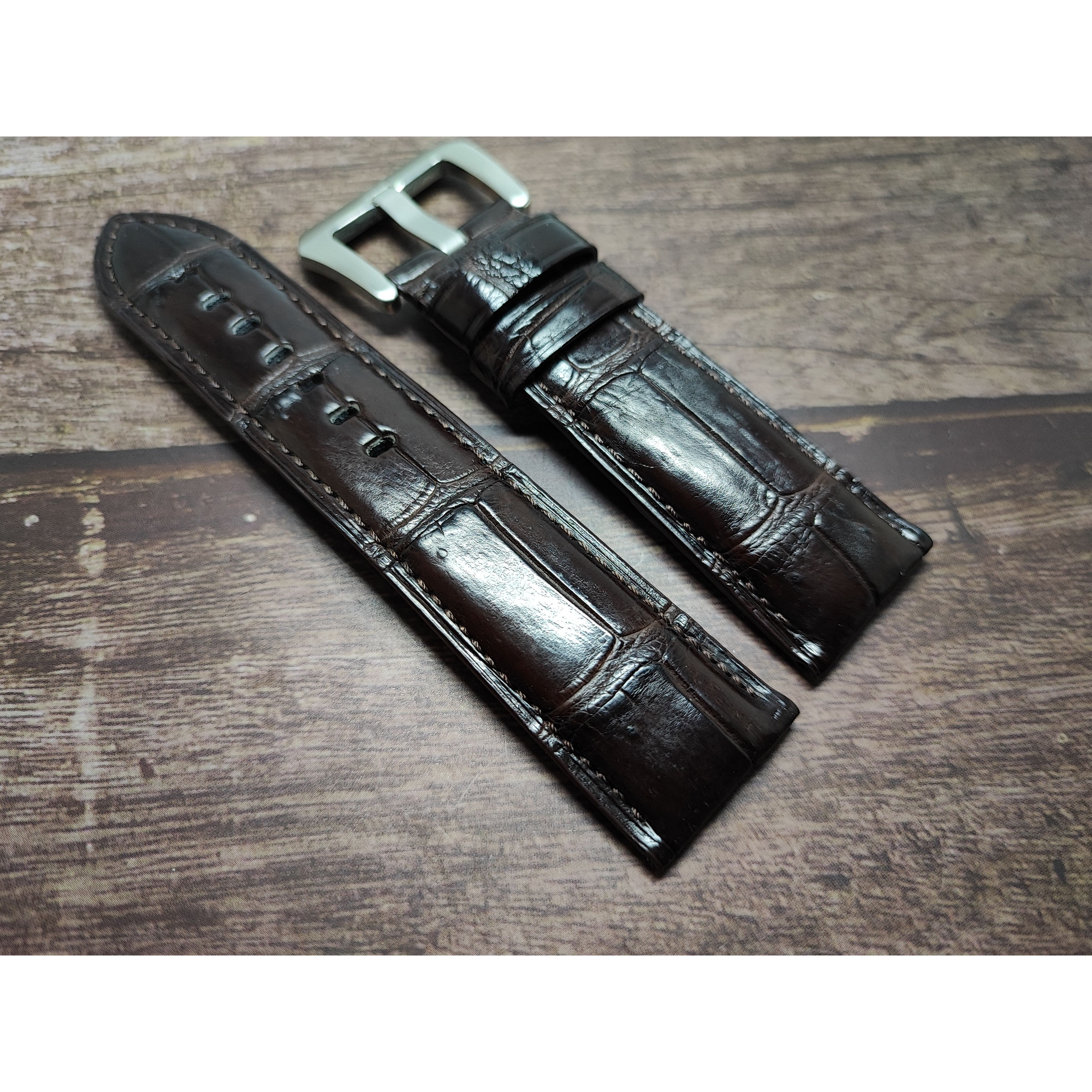 24mm 鱷魚皮錶帶 美州大鱷魚大竹節 雙面料 *深啡色*(面料:大竹節x底圓紋)