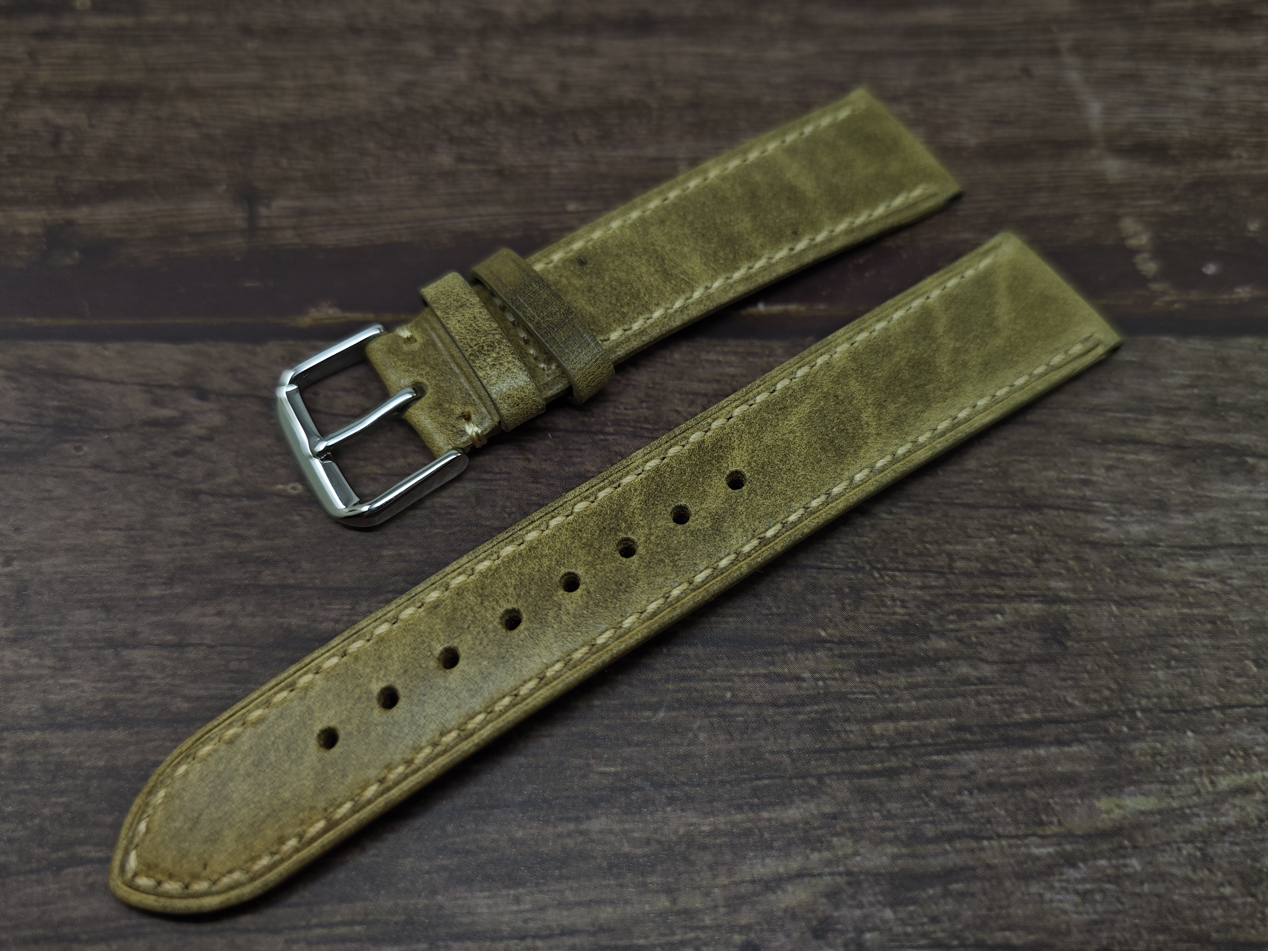 18/19/20/21/22mm 錶帶 牛皮錶帶 油臘漸變紋 卡其